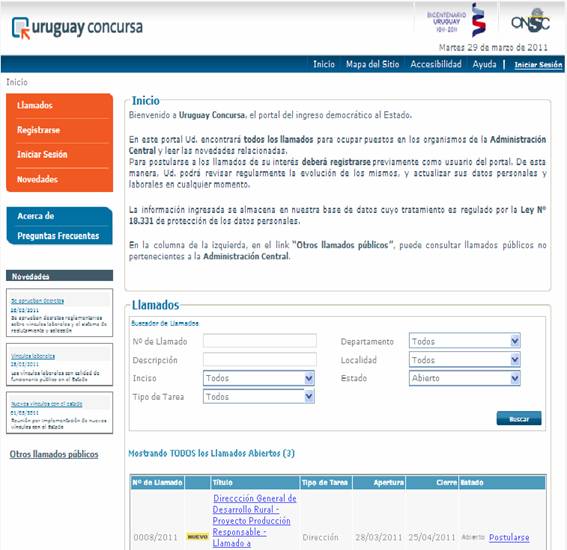 El Estado del Llamado puede aparecer de tres formas: Abierto, Inscripciones Cerradas o Finalizado.