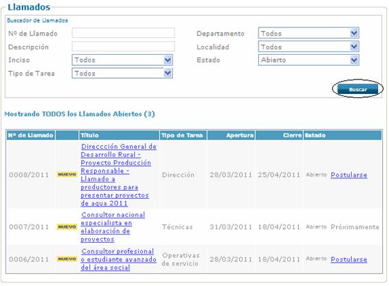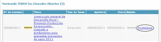 Aquellos llamados que estén abiertos y se permita la inscripción a los mismos, tendrán la opción de “Postularse”.