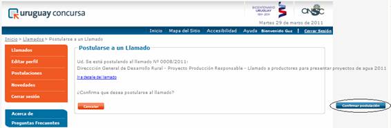 Para confirmar la postulación debe seleccionar “Confirmar postulación”