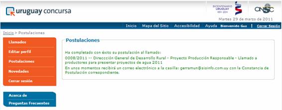 Luego de postularse, el usuario recibe un mail en su casilla de correo que tendrá como documento adjunto una constancia de inscripción, la misma será un documento de extensión pdf.
