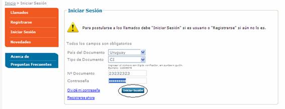 Luego de completar los campos el usuario selecciona “Iniciar Sesión”